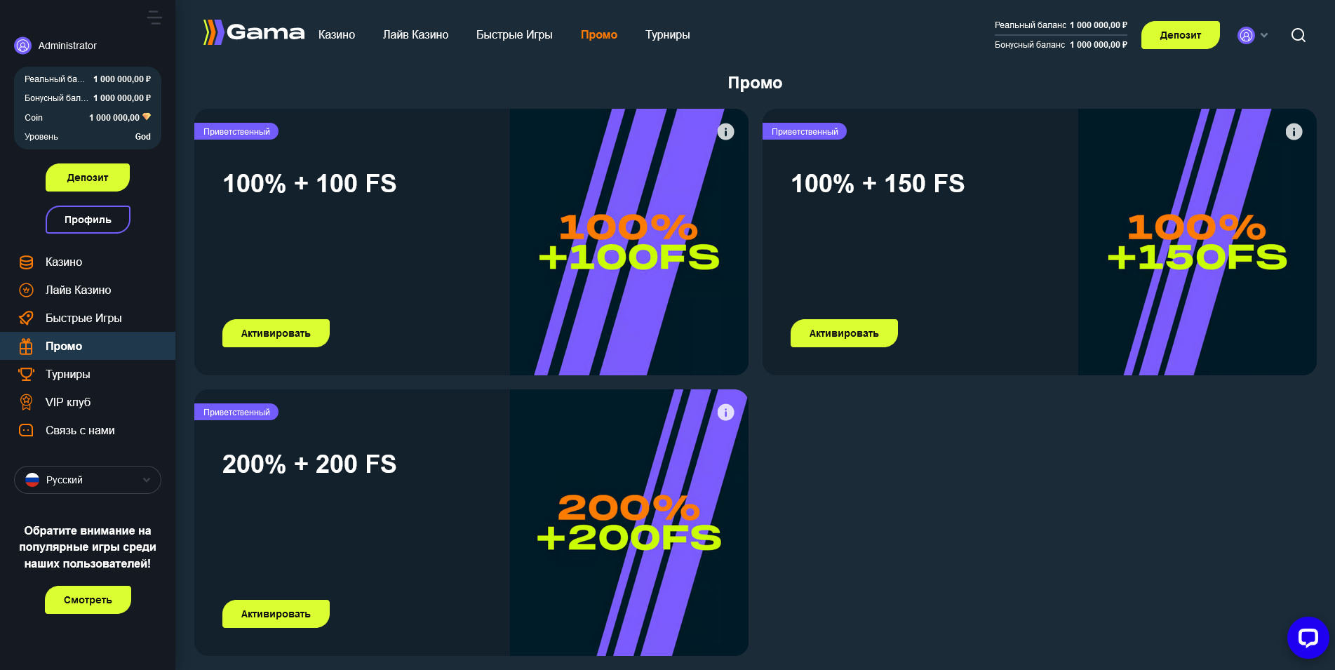 Вы сможете подключить партнёрскую программу для вашего казино с помощью специального модуля.